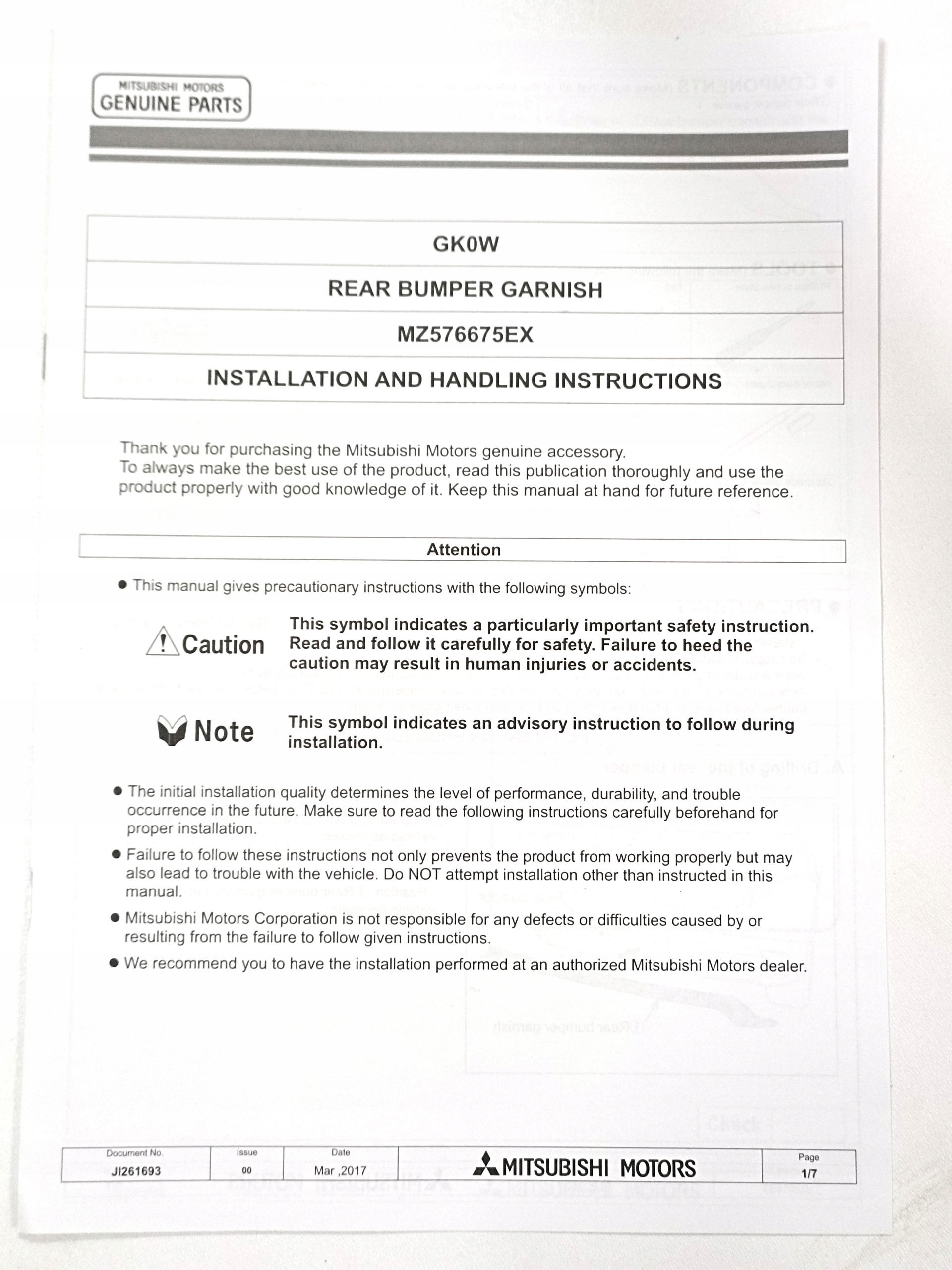 | Каталожный номер детали: | MZ576675EX |
