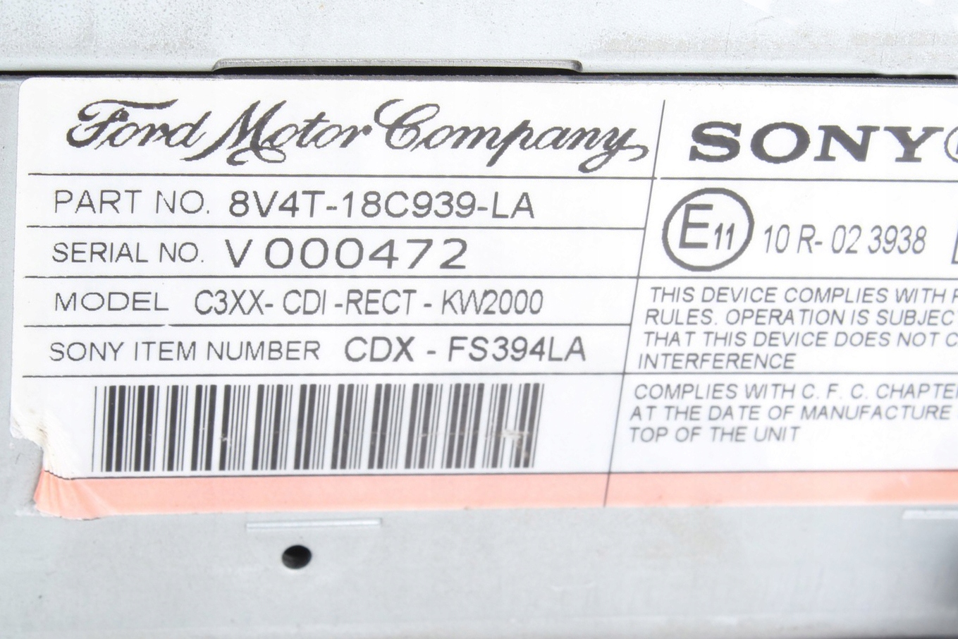 | Оригинальный каталожный номер: | 8V4T-18C939-LA, 8V4T18C939LA |