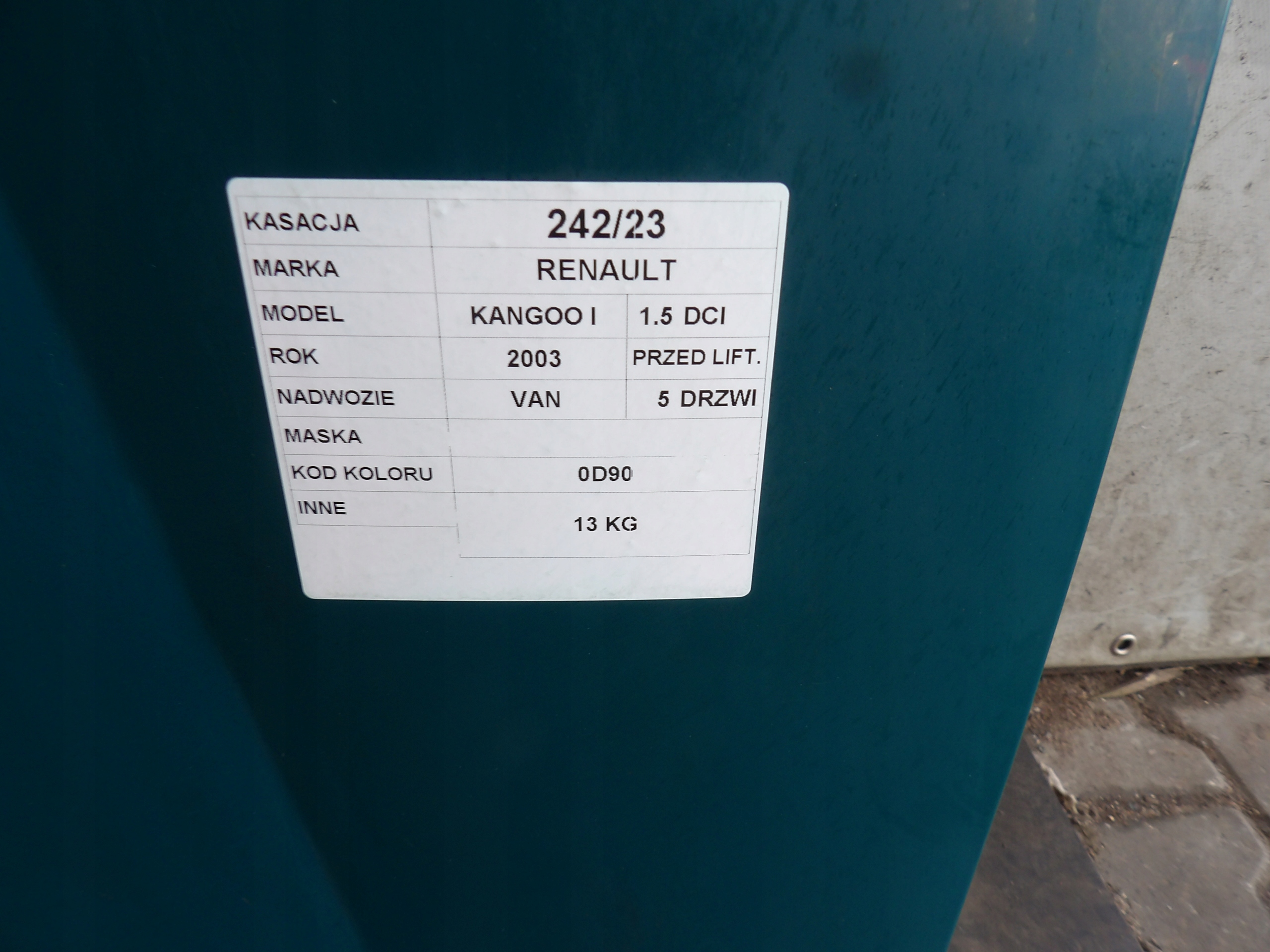 Renault kangoo i капот lak. od90