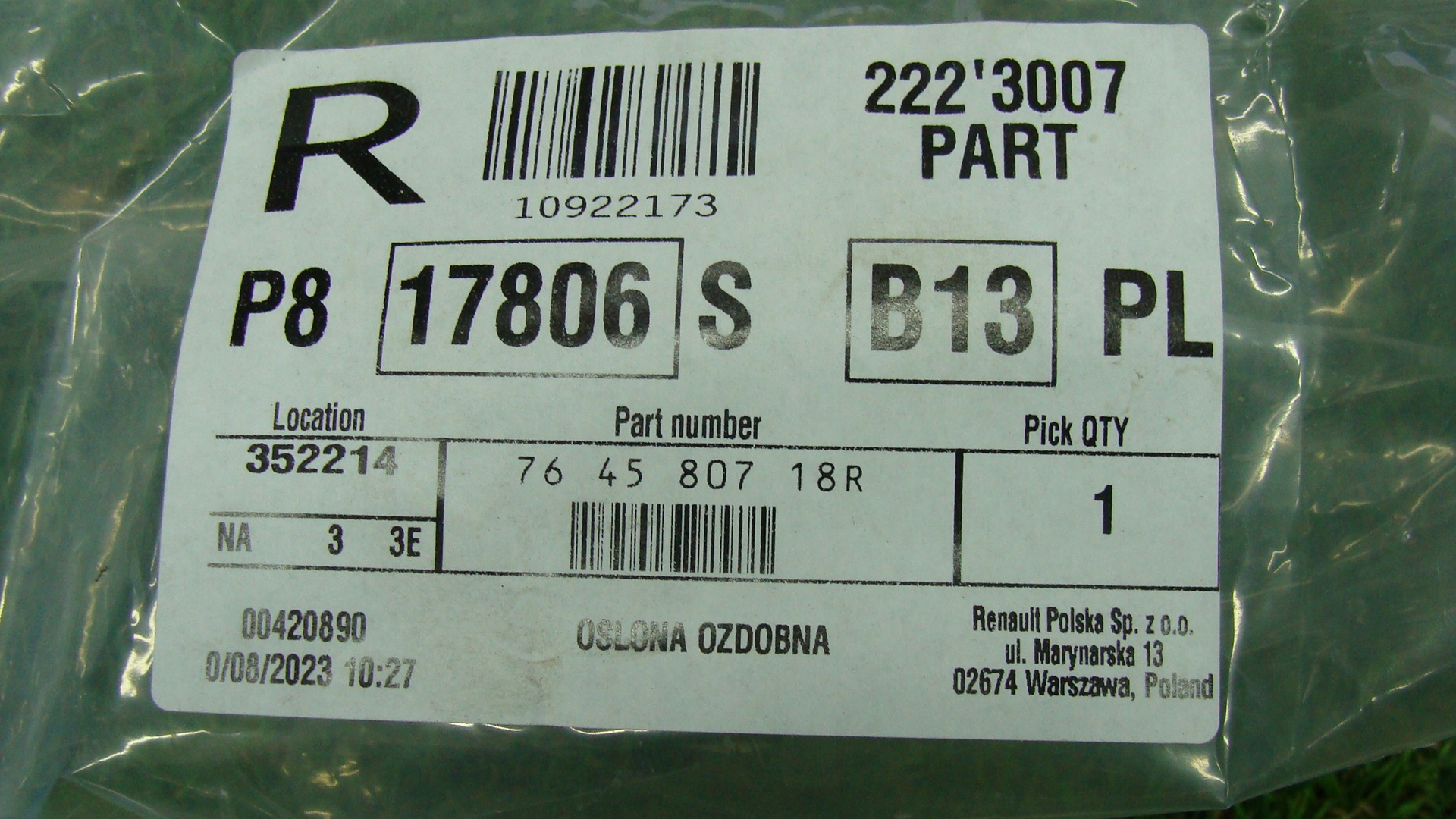 | Каталожный номер детали: | 764580718R |