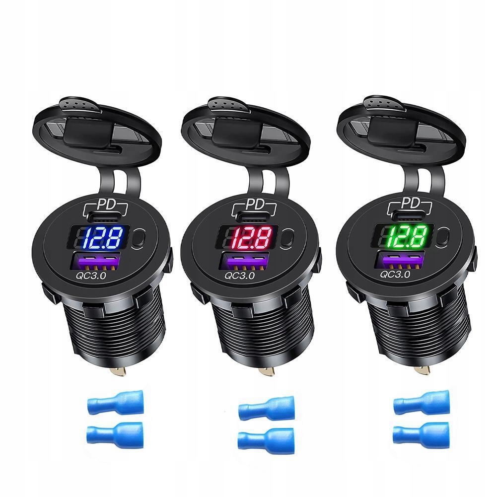 Зарядное устройство автомобильная usb qc3.0 + pd usb c woltomierz кнопка on/off