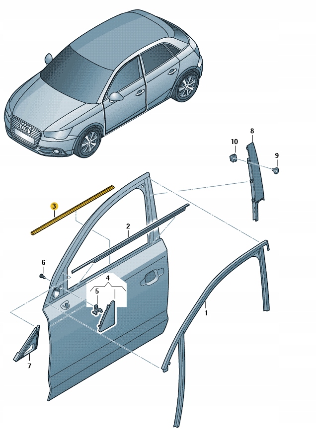 Прокладка уплотнитель стекло перед левая внутренняя audi a1 aso оригинал заказать