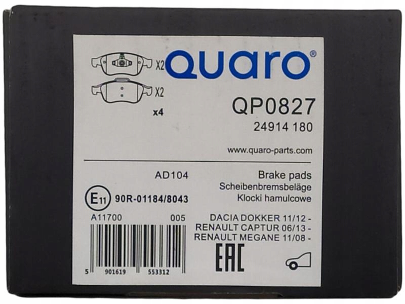 Тормозные колодки ham. renault p. megane 08-/duster quaro qp0827 набор тормозных колодок