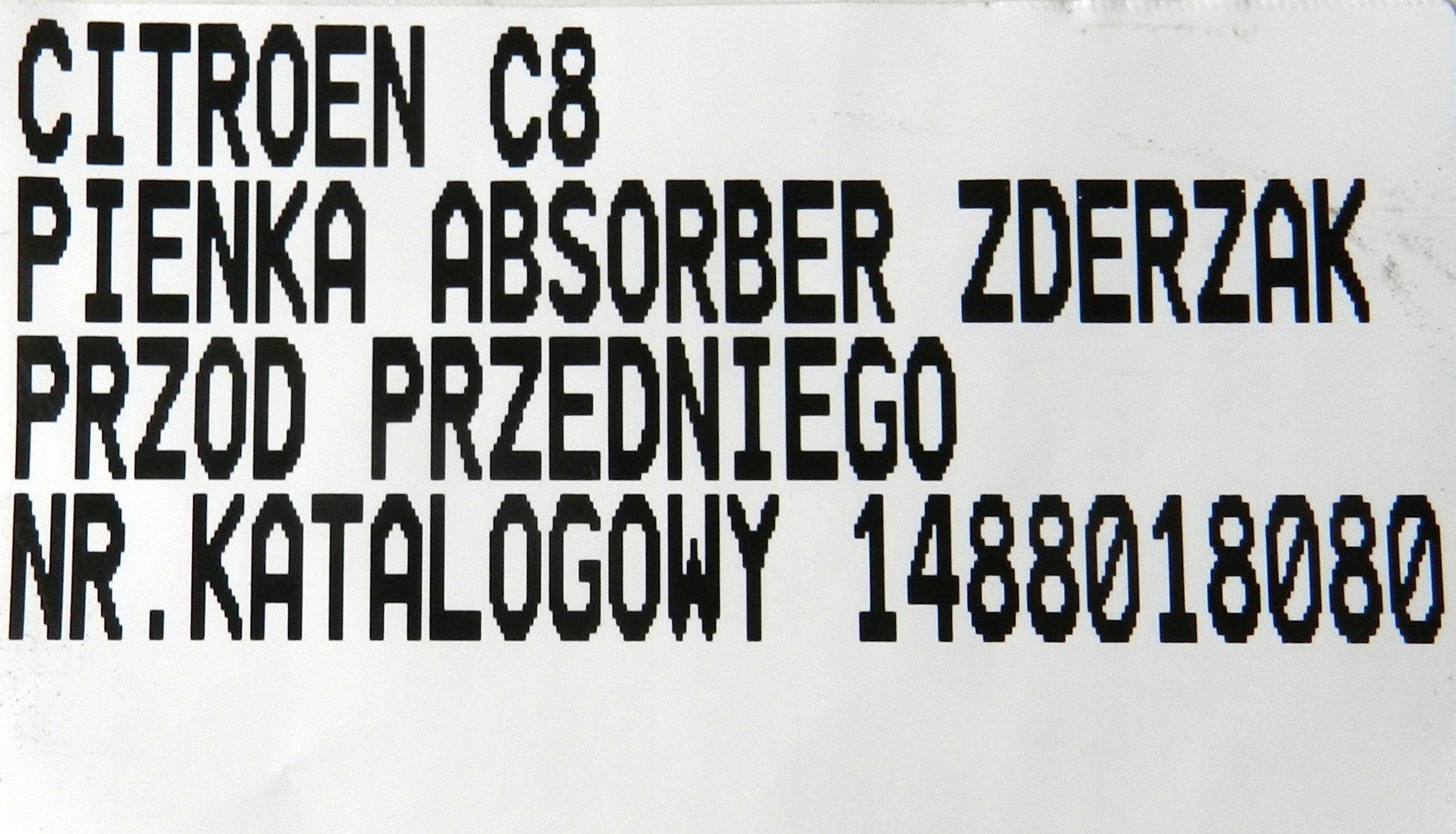 Каталожный номер детали: PIANKA ABSORBER ZDERZAKA PRZÓD CITROEN C8 02-08 1488018080