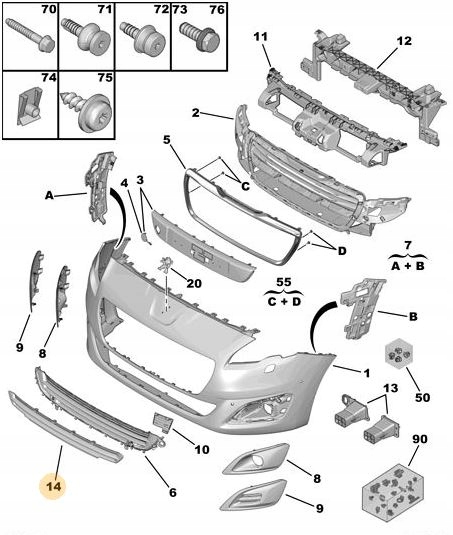 Заглушка решётки бампера peugeot 5008