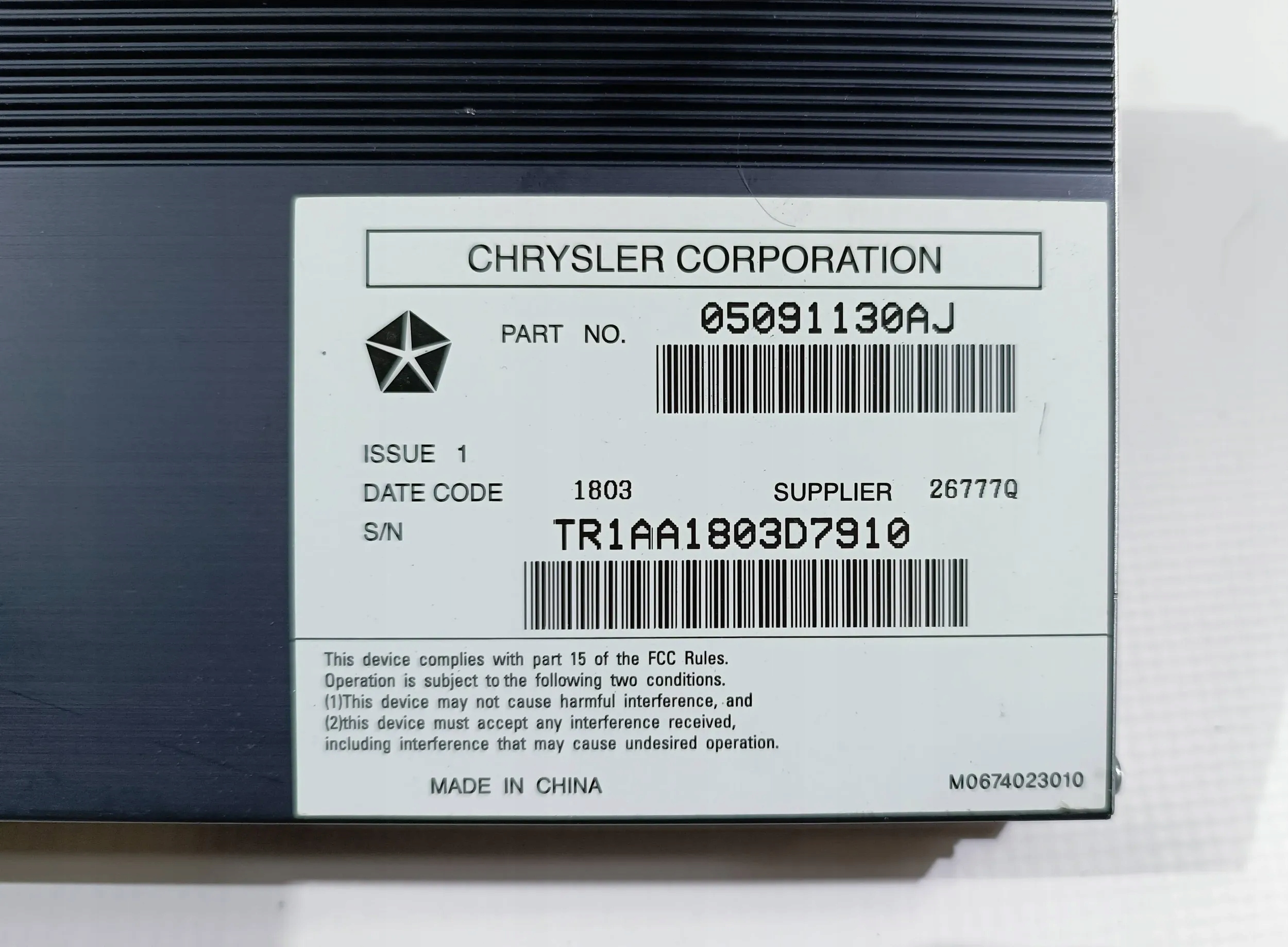 | Каталожный номер детали: | 05091130AJ |