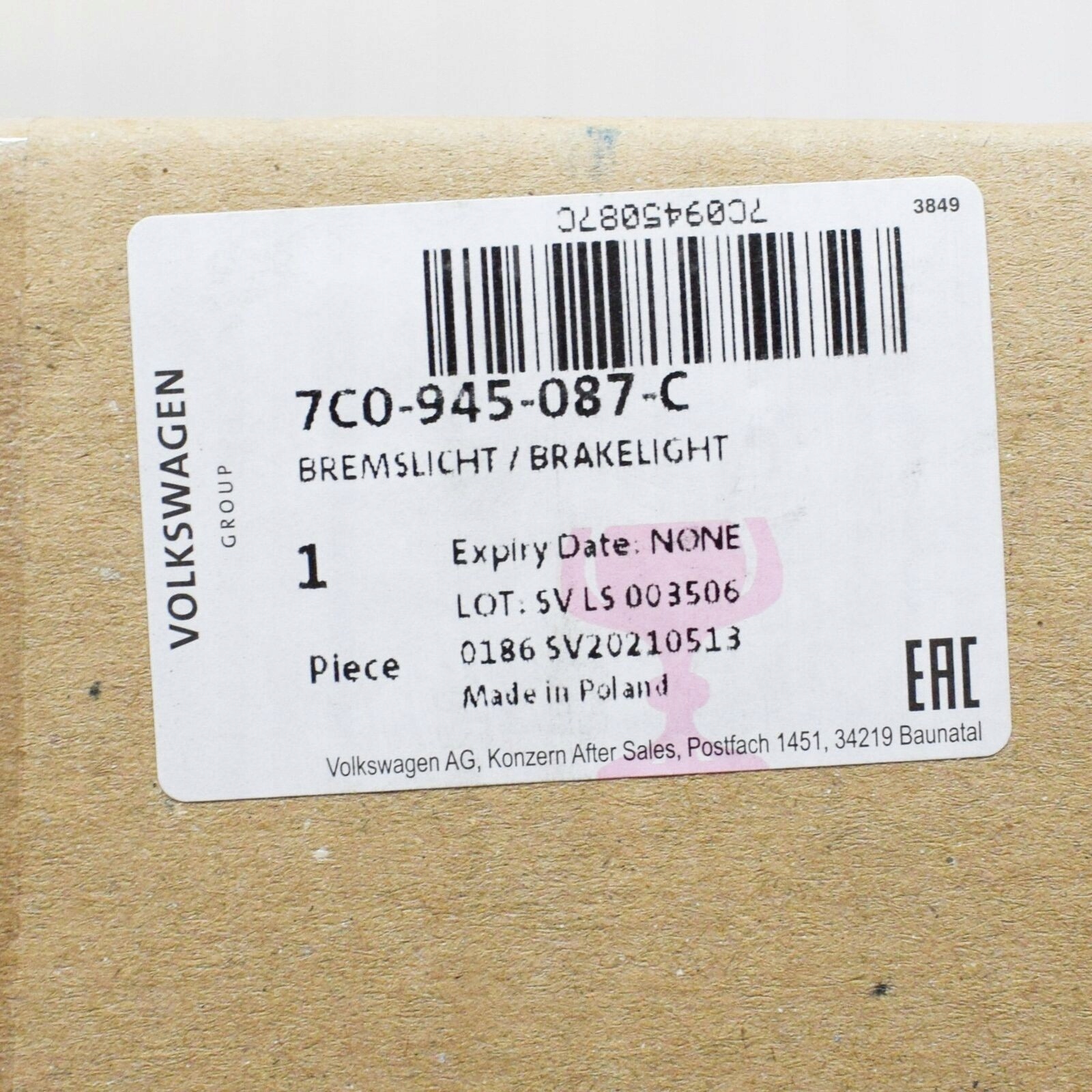 | Каталожный номер детали: | 7C0945087C |