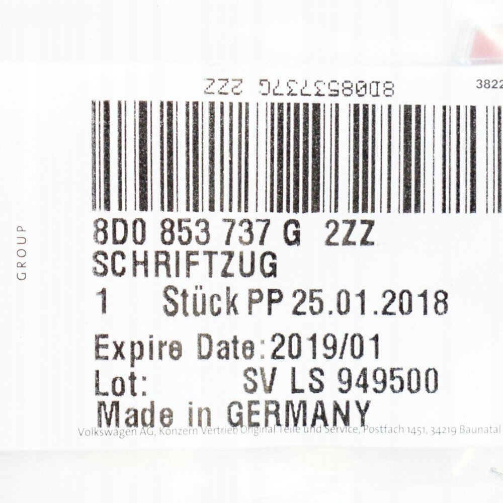 Vag inskrypcja хром audi a3 a4 a6 1995-2017 оригинальный 8d0853737g2zz