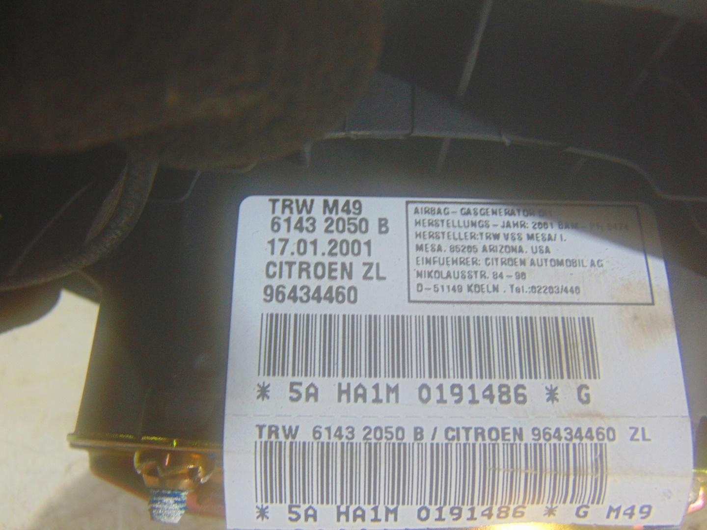 Подушка подушка безопасности водителя citroen berlingo i 96434460