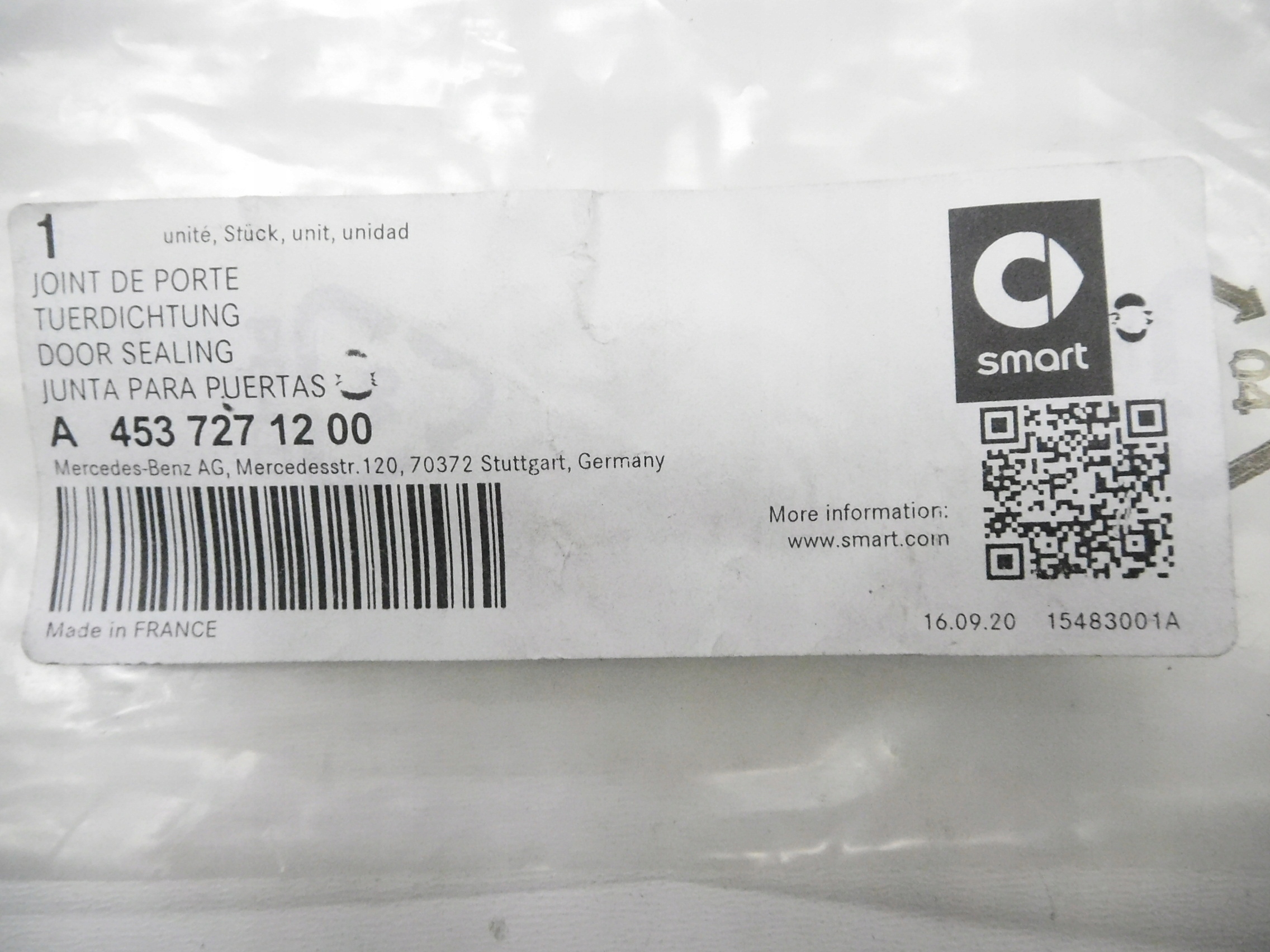 Прокладка дверь smart 453 оригинальный номер a4537271200