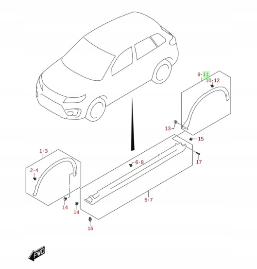 Suzuki vitara iii 2015- молдинг крыла перед левая