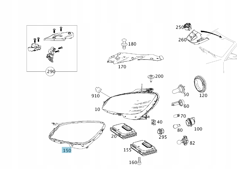 Рамка фара левая mercedes w203 w204