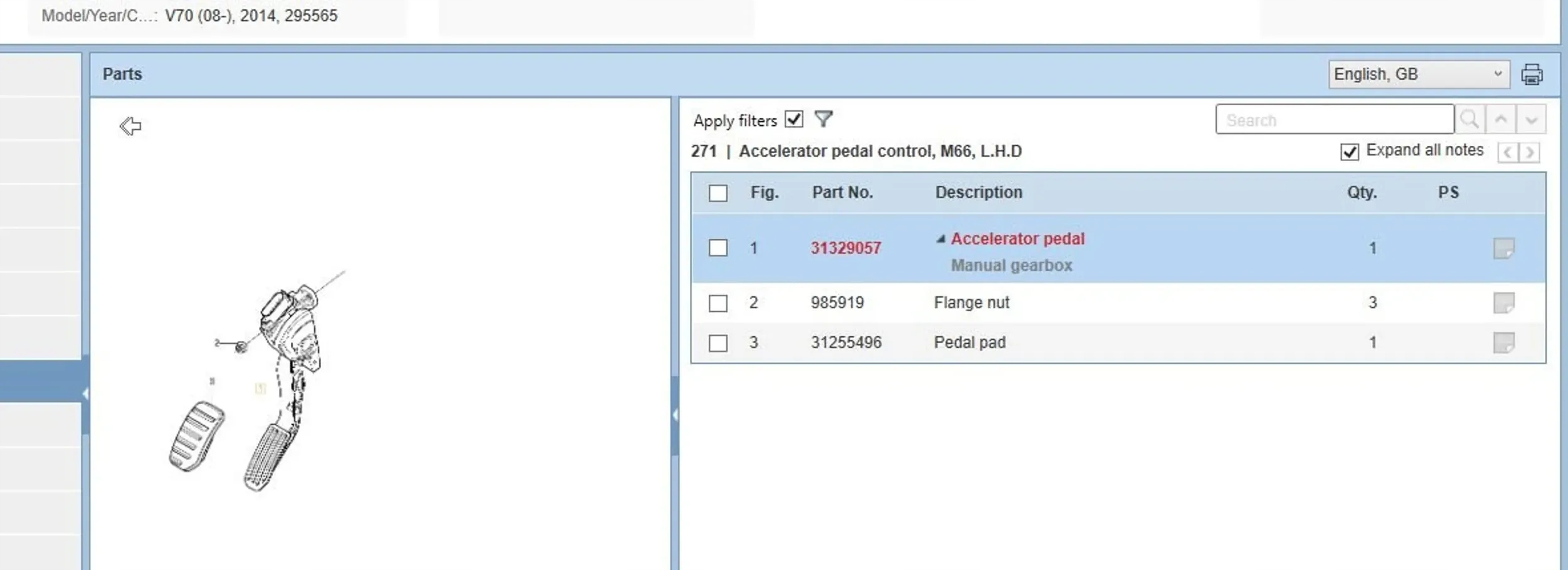 | Каталожный номер детали: | 31329057 |