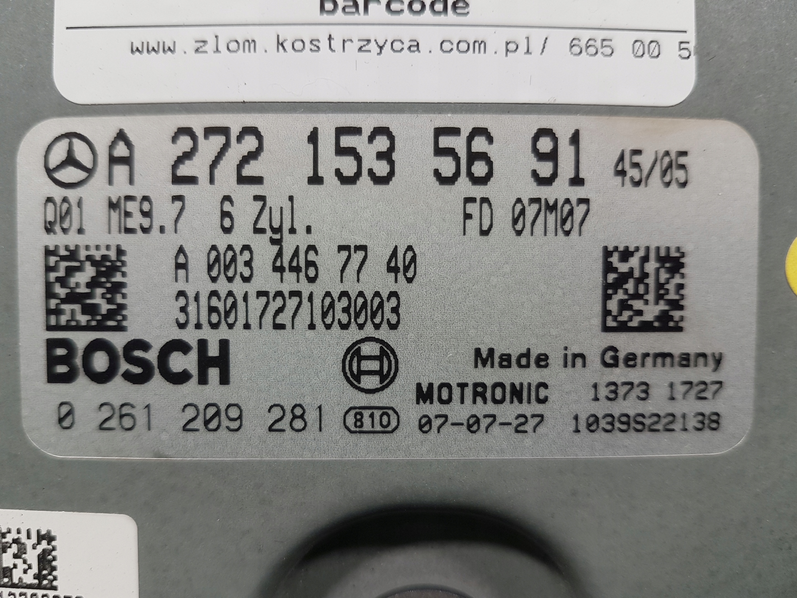 Mercedes w204 3.0 v6 блок управления двигателя a2721535691