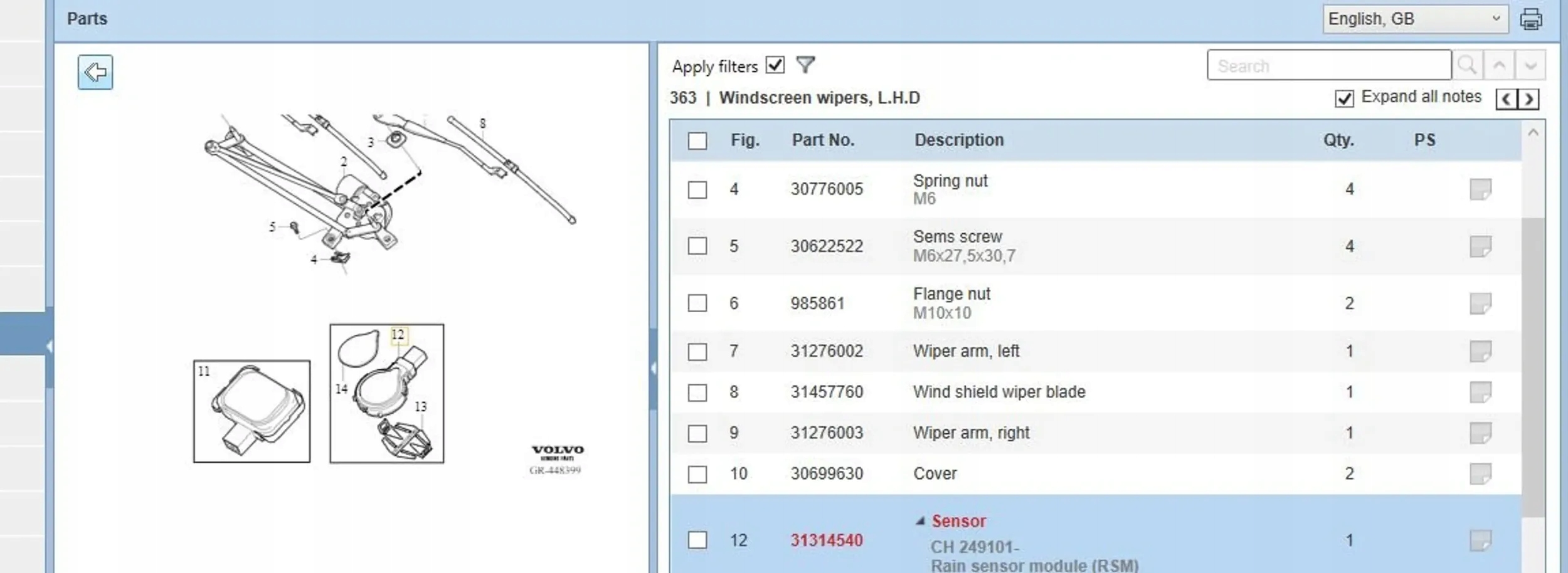 | Каталожный номер детали: | 31314540 |