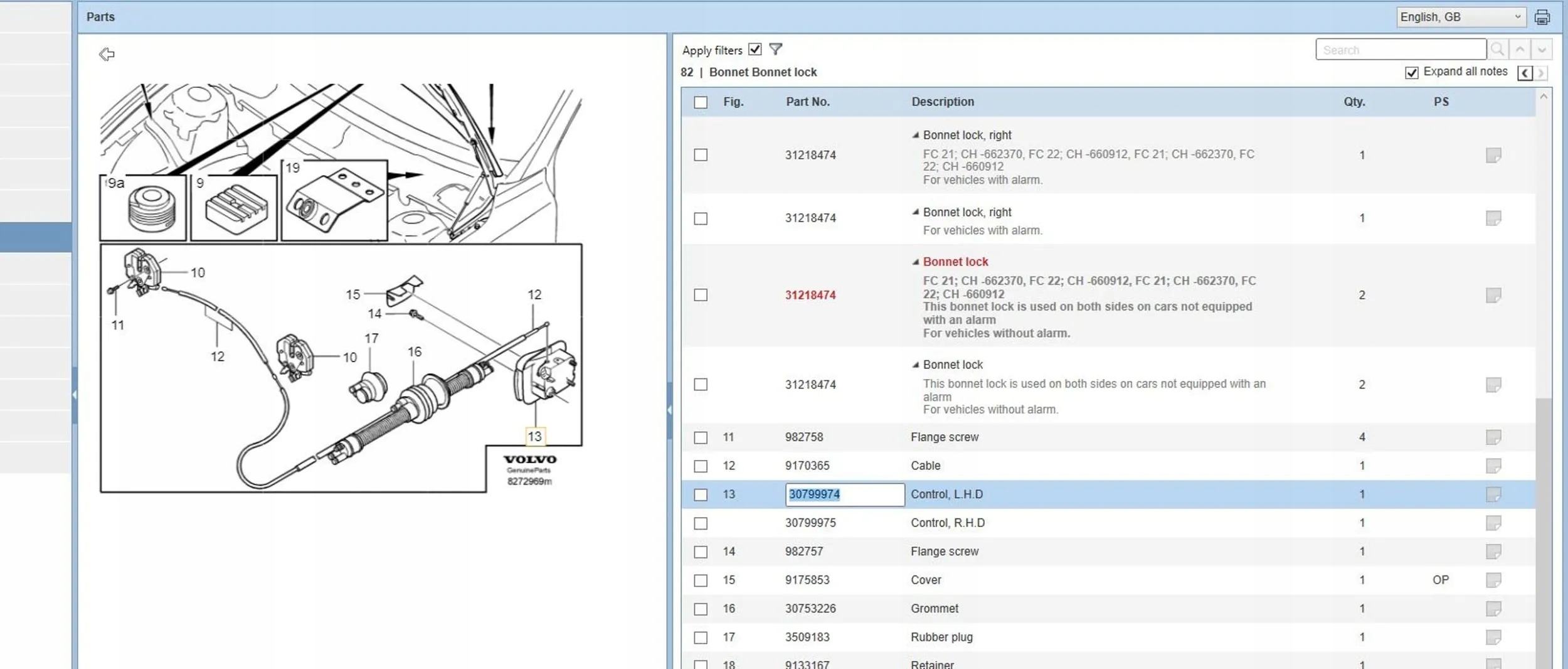 | Каталожный номер детали: | 30799974 |