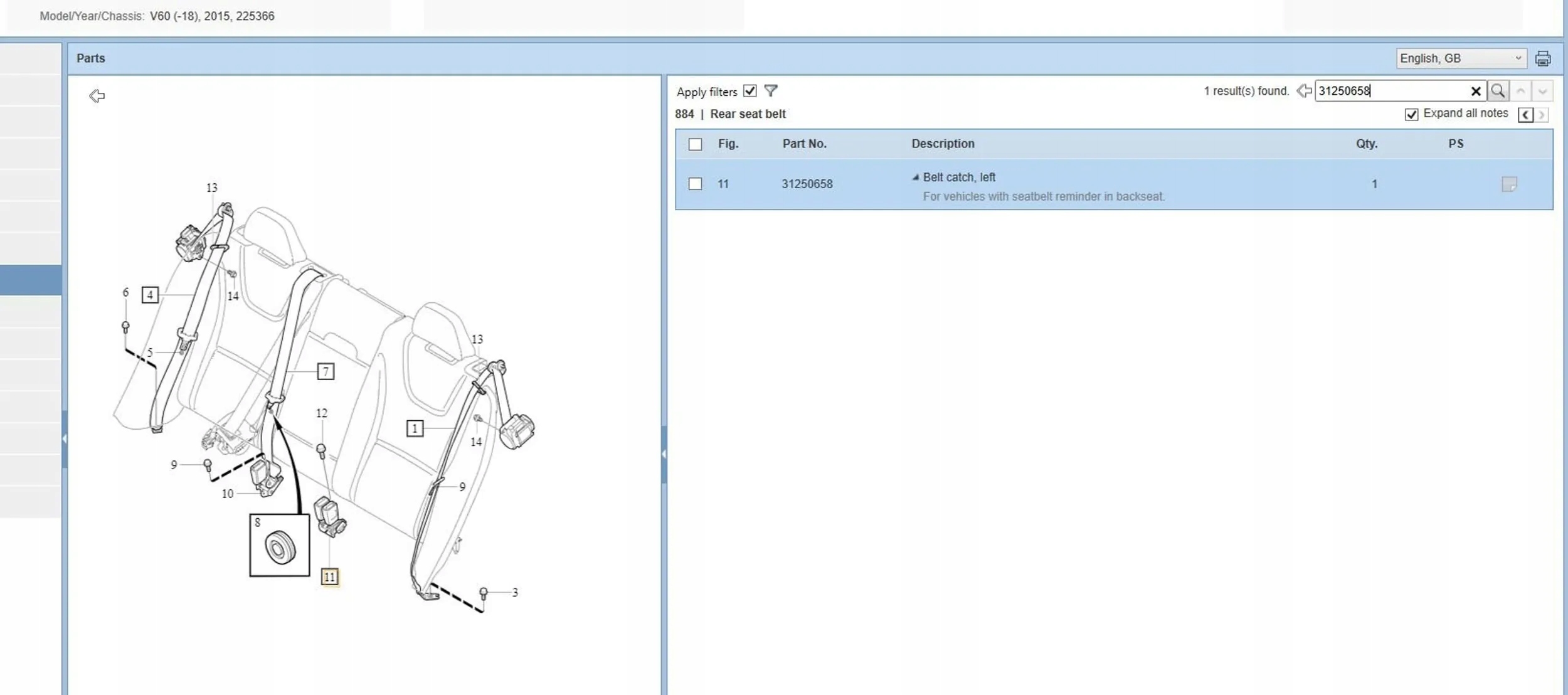 | Каталожный номер детали: | 31250658 |