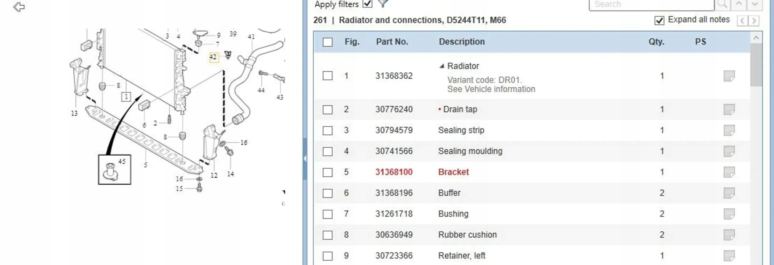 | Каталожный номер детали: | 31265124 |