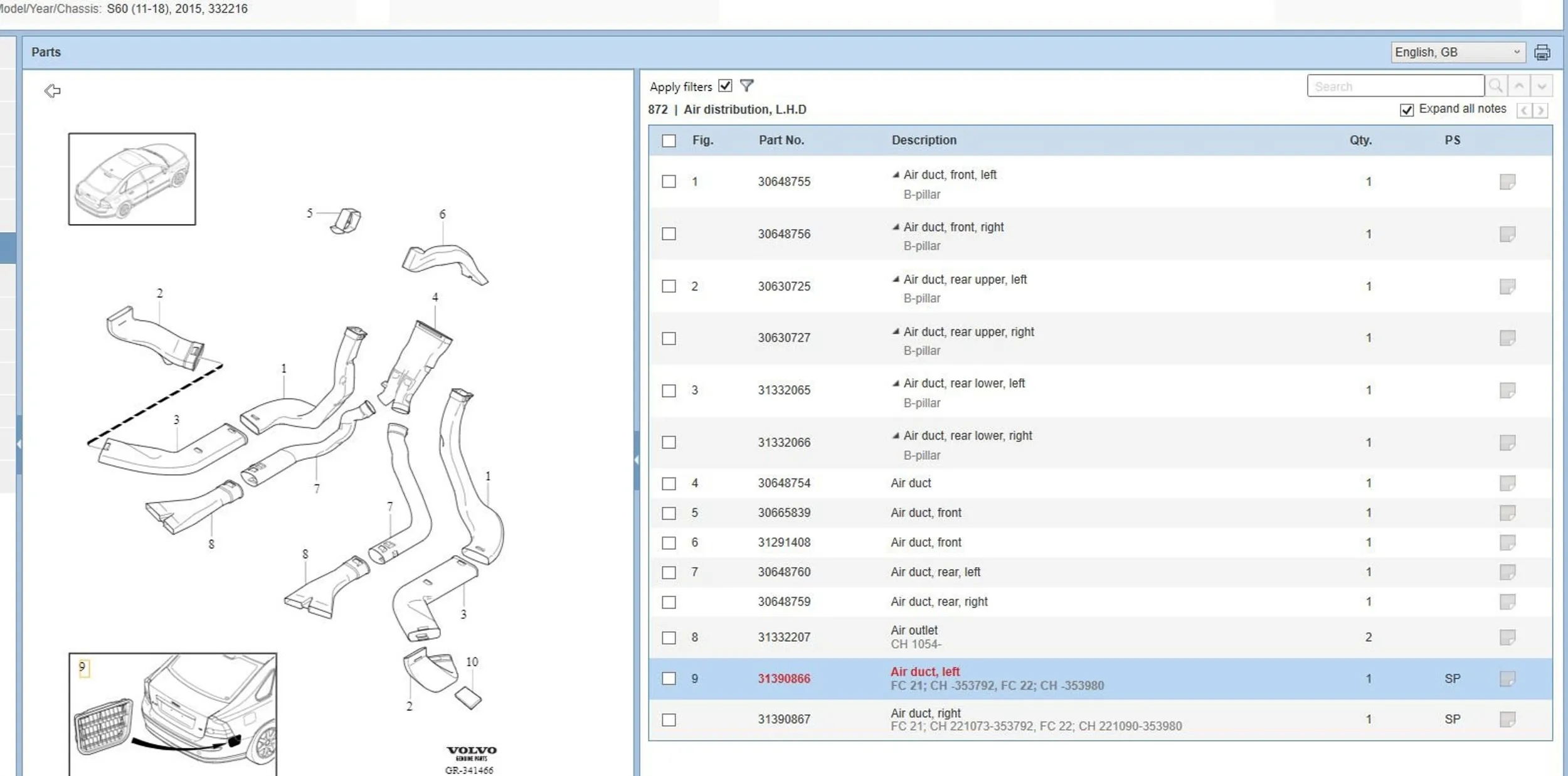 | Каталожный номер детали: | 31390866 |
