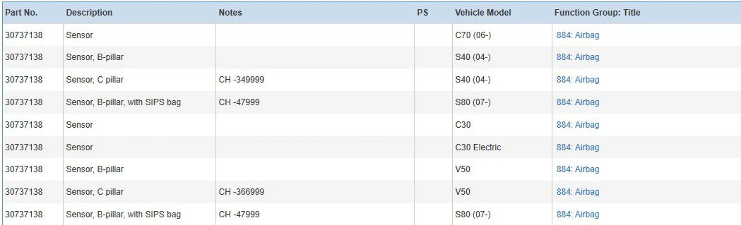 | Каталожный номер детали: | 30737138 |
