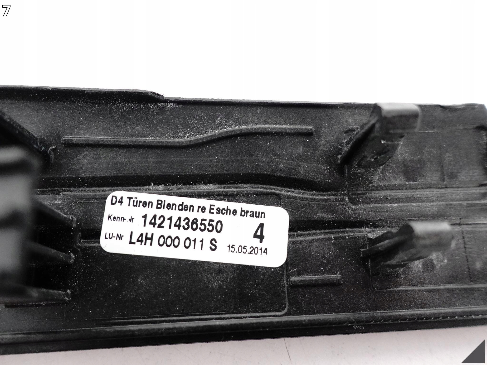 | Оригинальный каталожный номер: | 4H0 867 420 4H0.867.420 GH2 LISTWA, DRZWI W DEKORACYJNA DREWNO PANEL, TAPICERKA BOCZEK LIFT 4H0867420D D, 4H0.867.420.D L4H LAKIER PO LIFCIE, FACELIFT LIFTING LIFTINGU LISTEWKA, NAKŁADKA DOKŁADKA OSŁONA POSZERZENIE, BLENDA 2009 09 2010 10 2011 11 2012 12, 2013 13 2014 14 2015 15 2016 16 2017 17, PRAWA PRAWY PRAWE PRAWO TYŁ TYŁNIE, TYLNI TYLNA TYLNY 4H0867420 NAKLADKA, DOKLADKA OSLONA TYL TYLNIE |