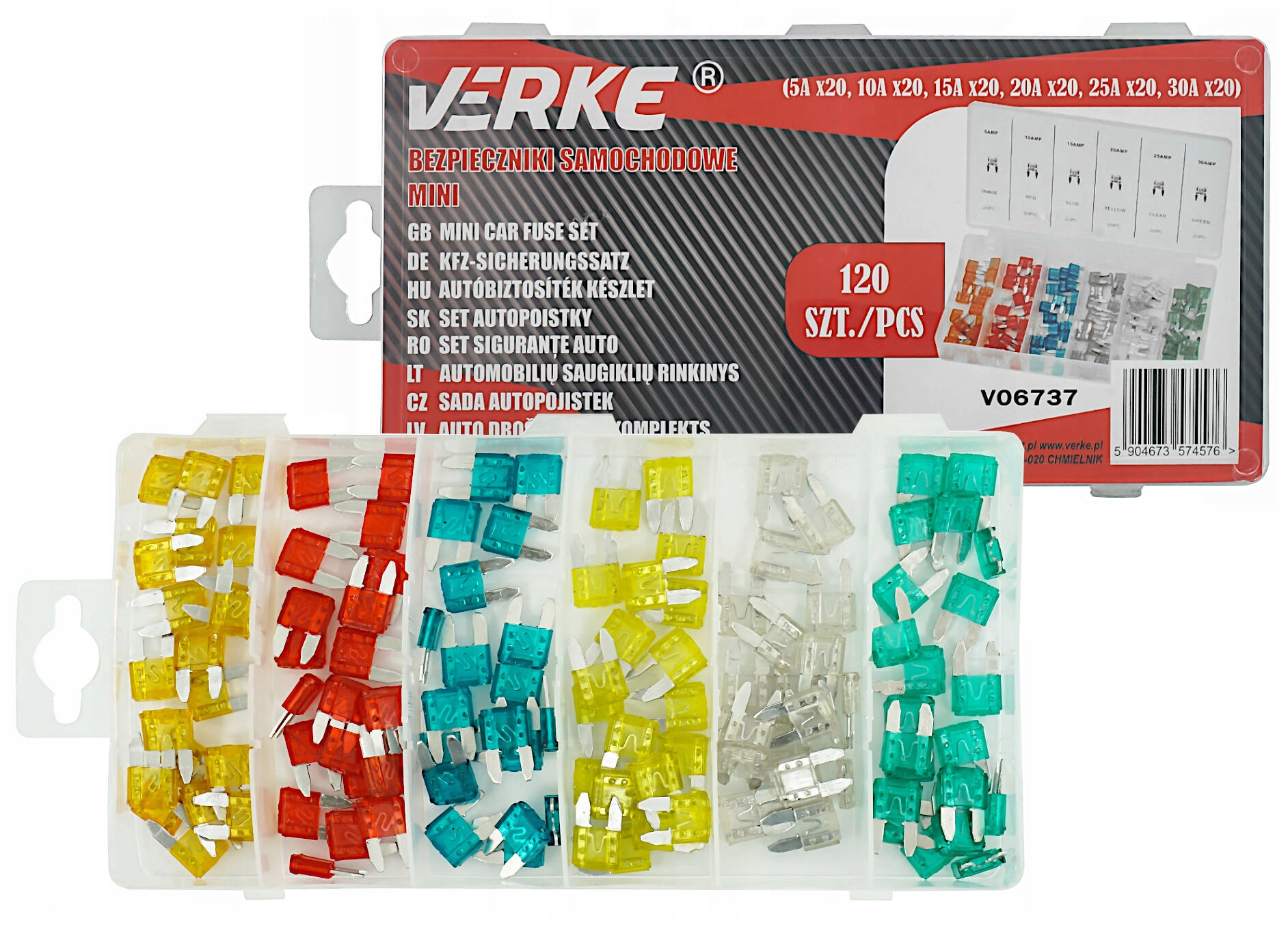 Verke v06737 предохранители автомобильные płytkowe набор mini maxi 5-30a