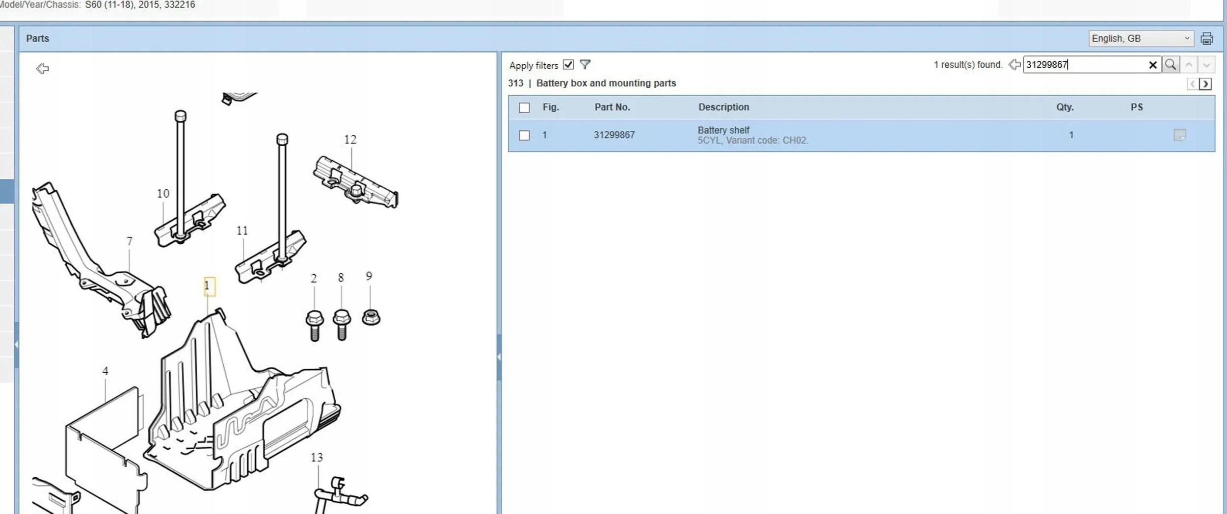 | Каталожный номер детали: | 31299867 |