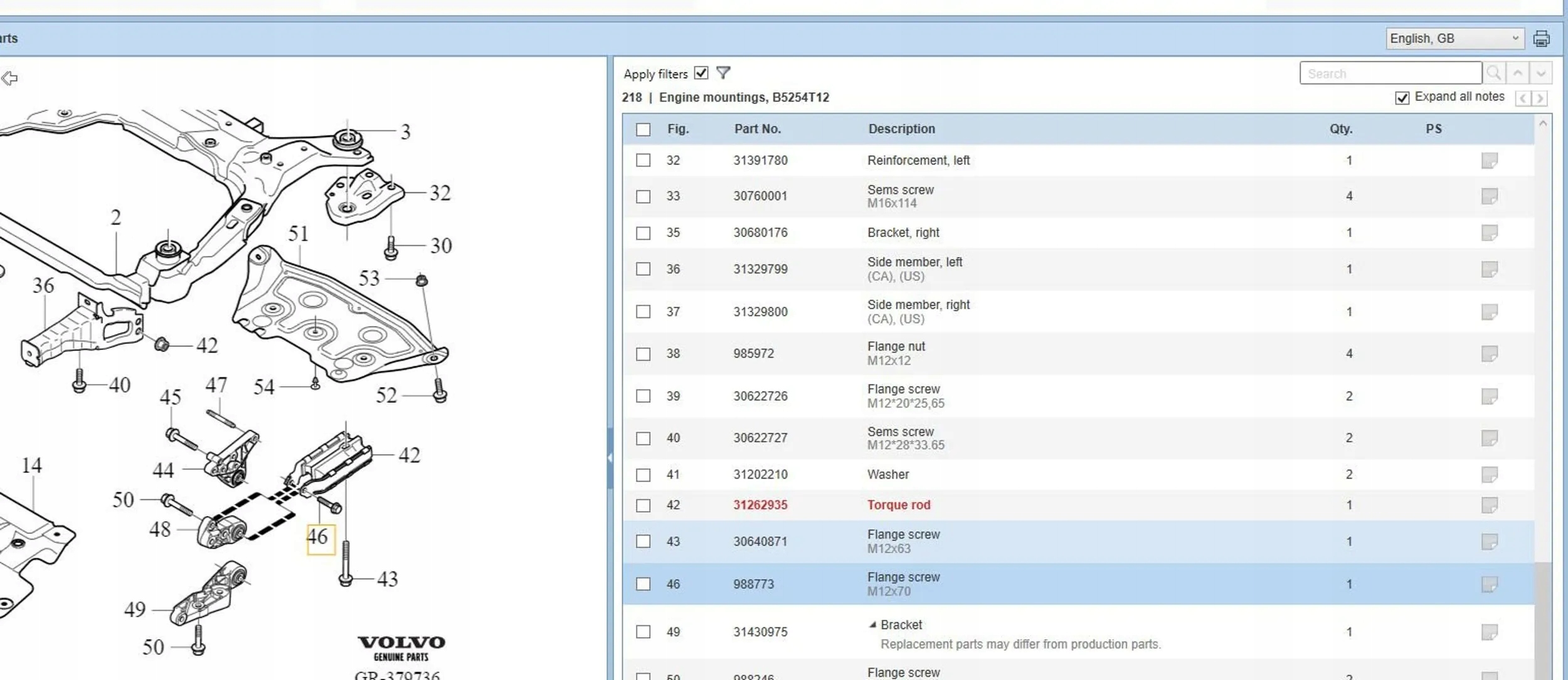 | Каталожный номер детали: | 31262935 |
