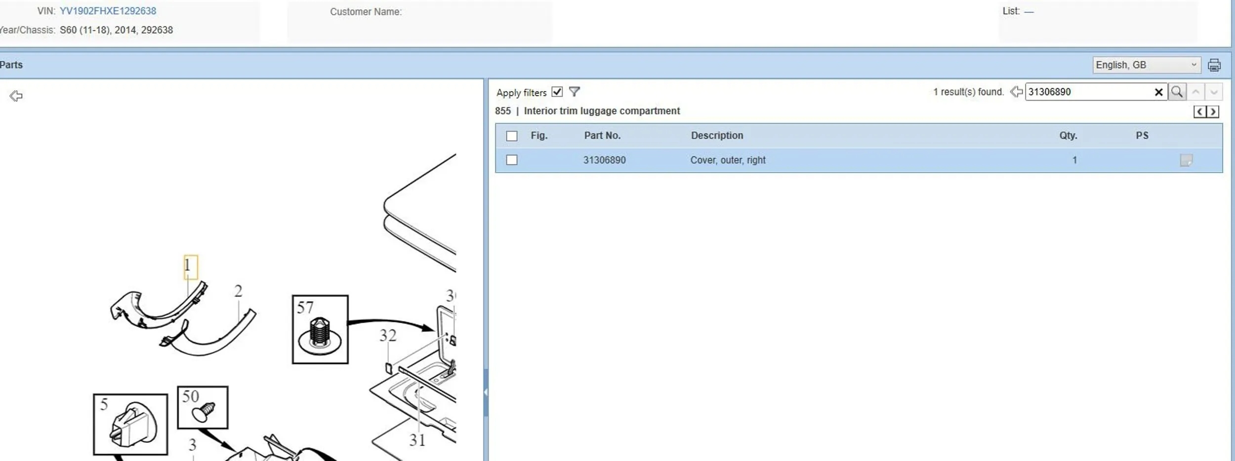 | Каталожный номер детали: | 31306890 |