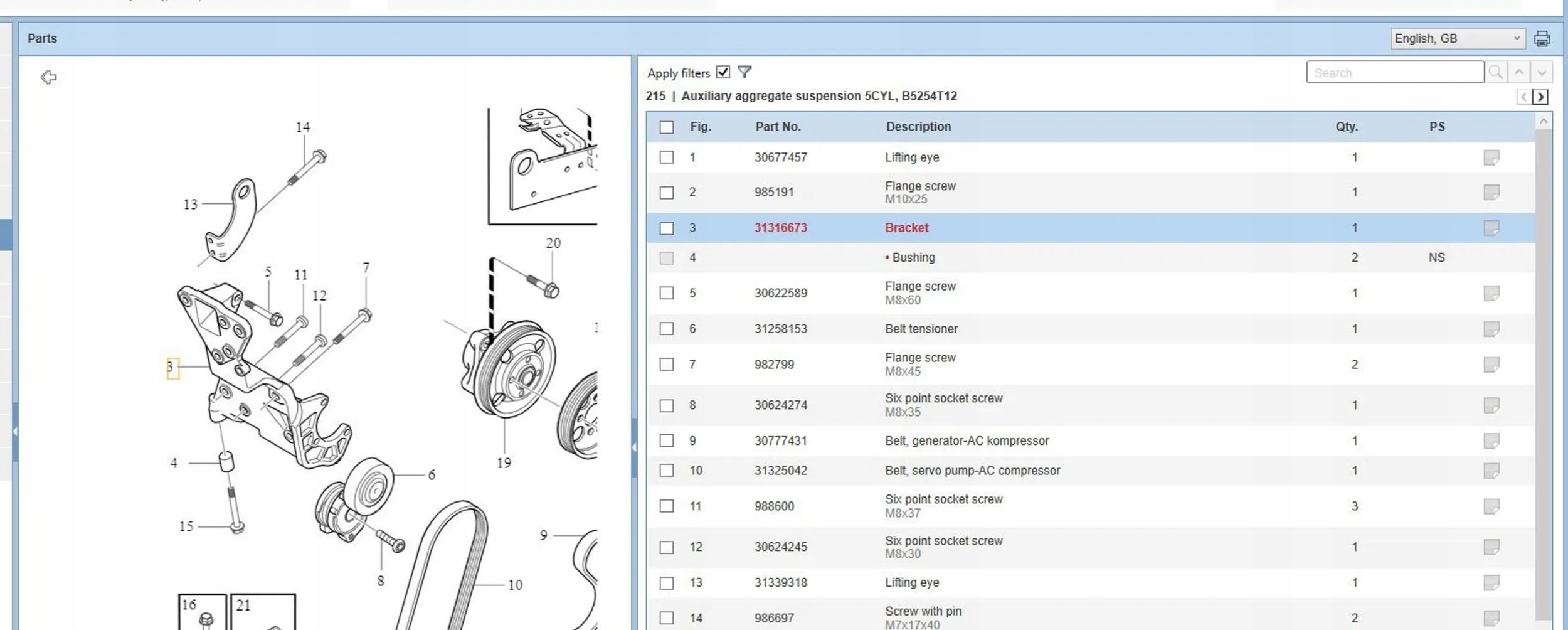 | Каталожный номер детали: | 31316673 |