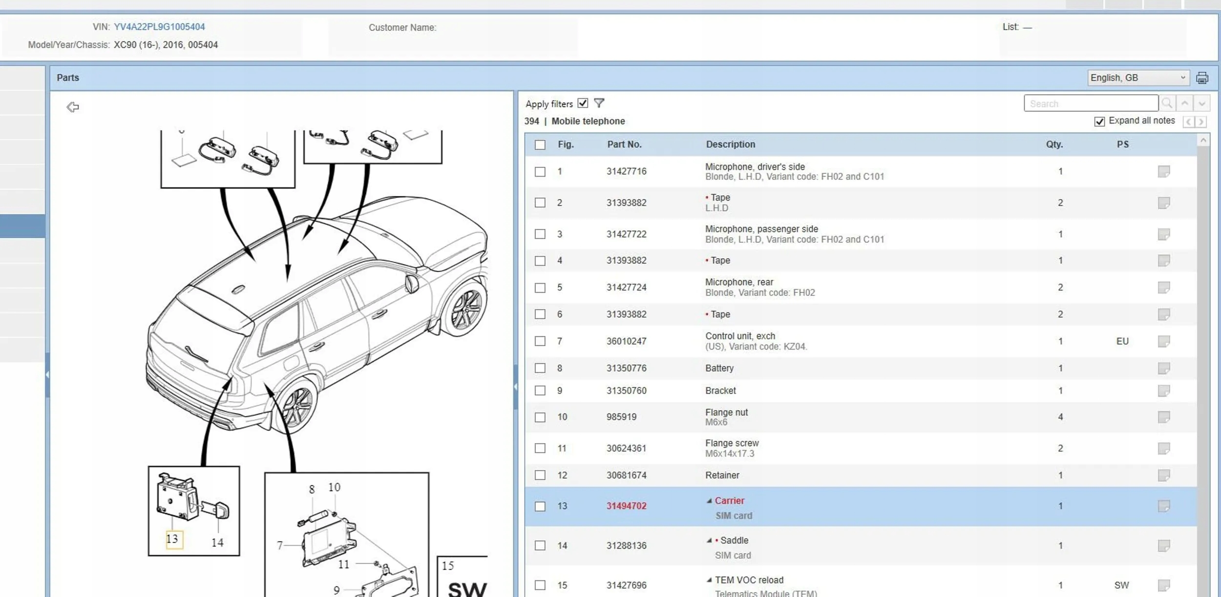 | Каталожный номер детали: | 31494702 |