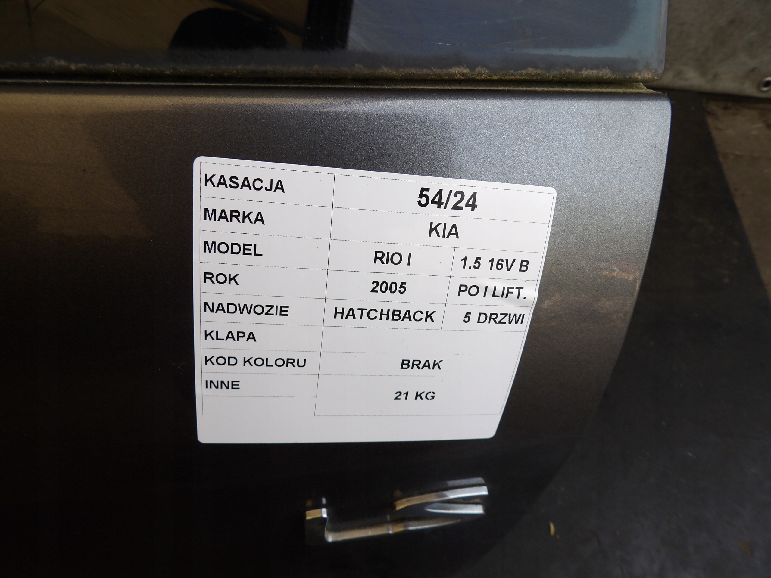 Kia rio i крышка багажника задняя хэтчбек 5d