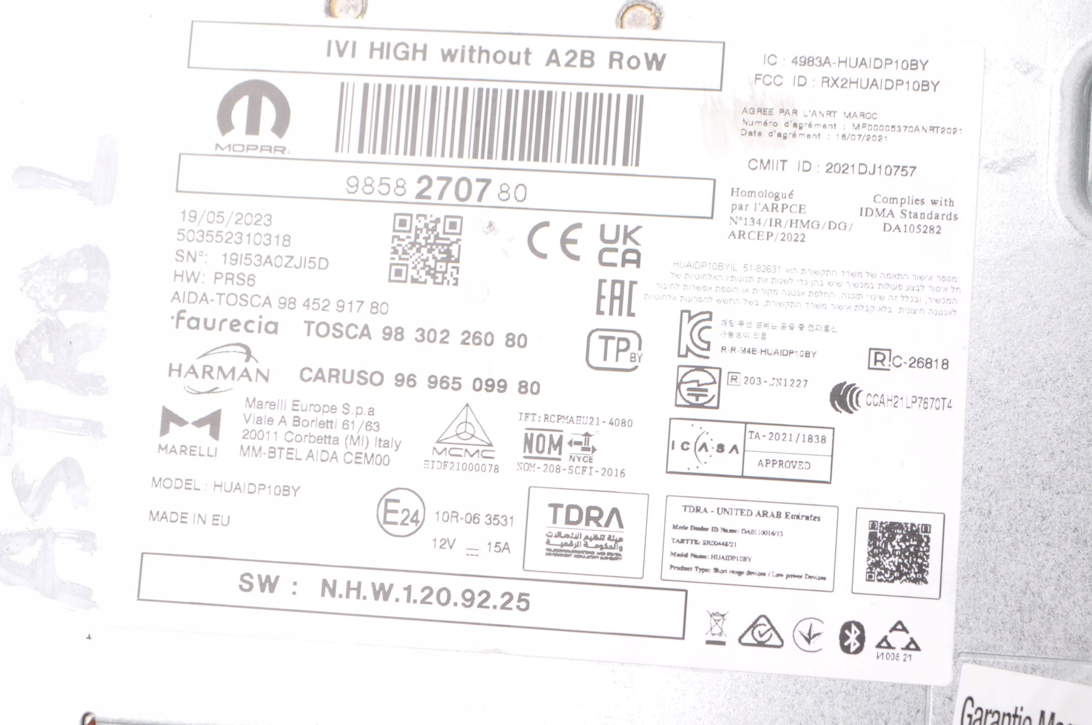 | Каталожный номер детали: | 9858270780 |