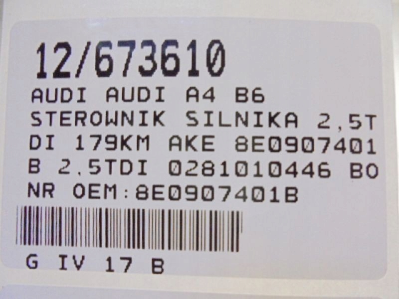 Audi a4 b6 бортовой компьютер 8e0907401b 2,5tdi 0281010446
