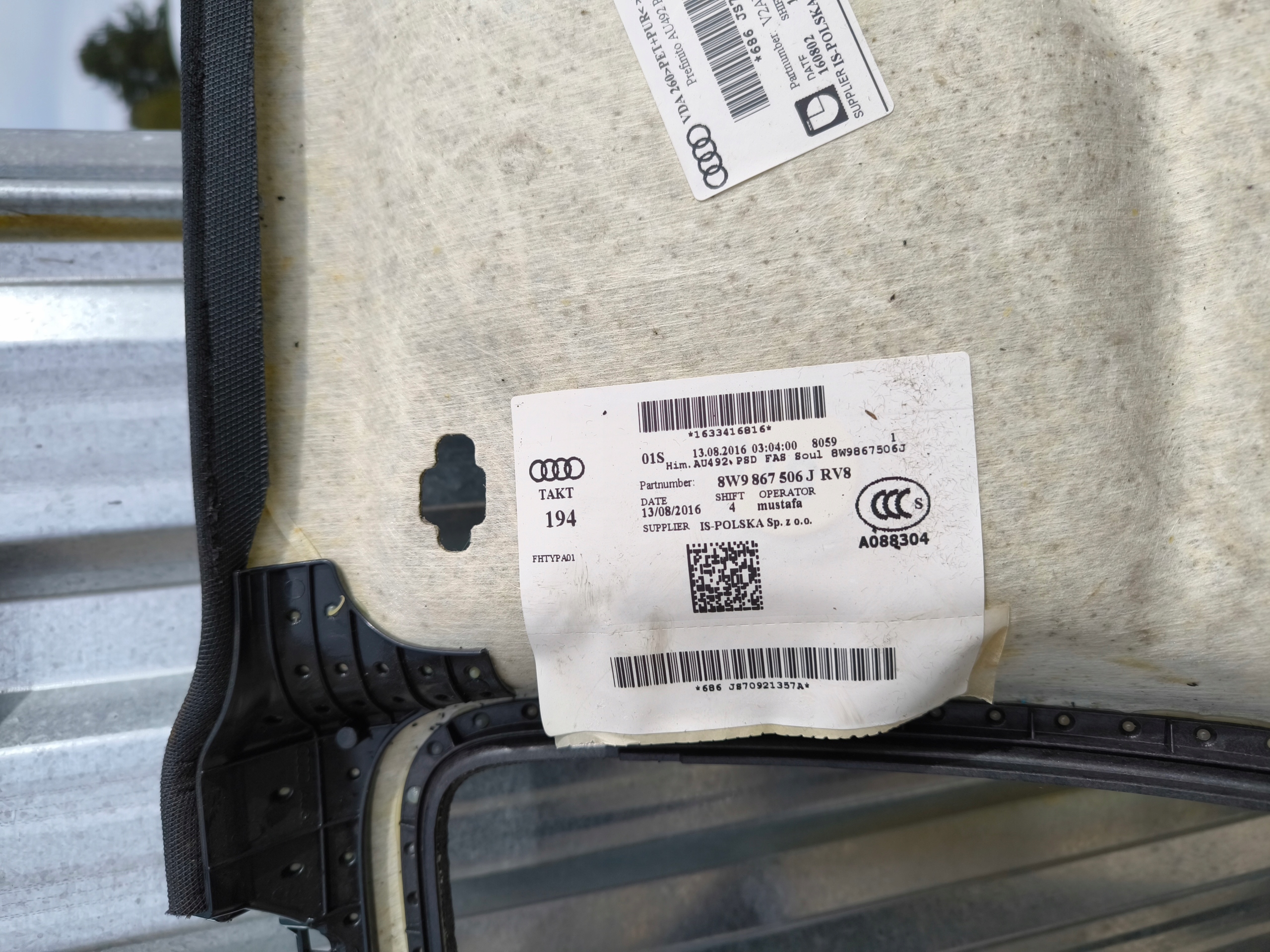Каталожный номер детали: PODSUFITKA, AUDI, A4, B9, S, LINE, AVANT, KOMBI, 8W9867506J, RV8, PANORAMA