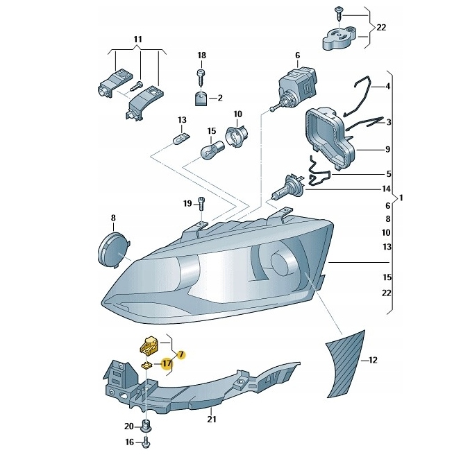 Volkswagen polo r6 клипса фара кронштейн фара