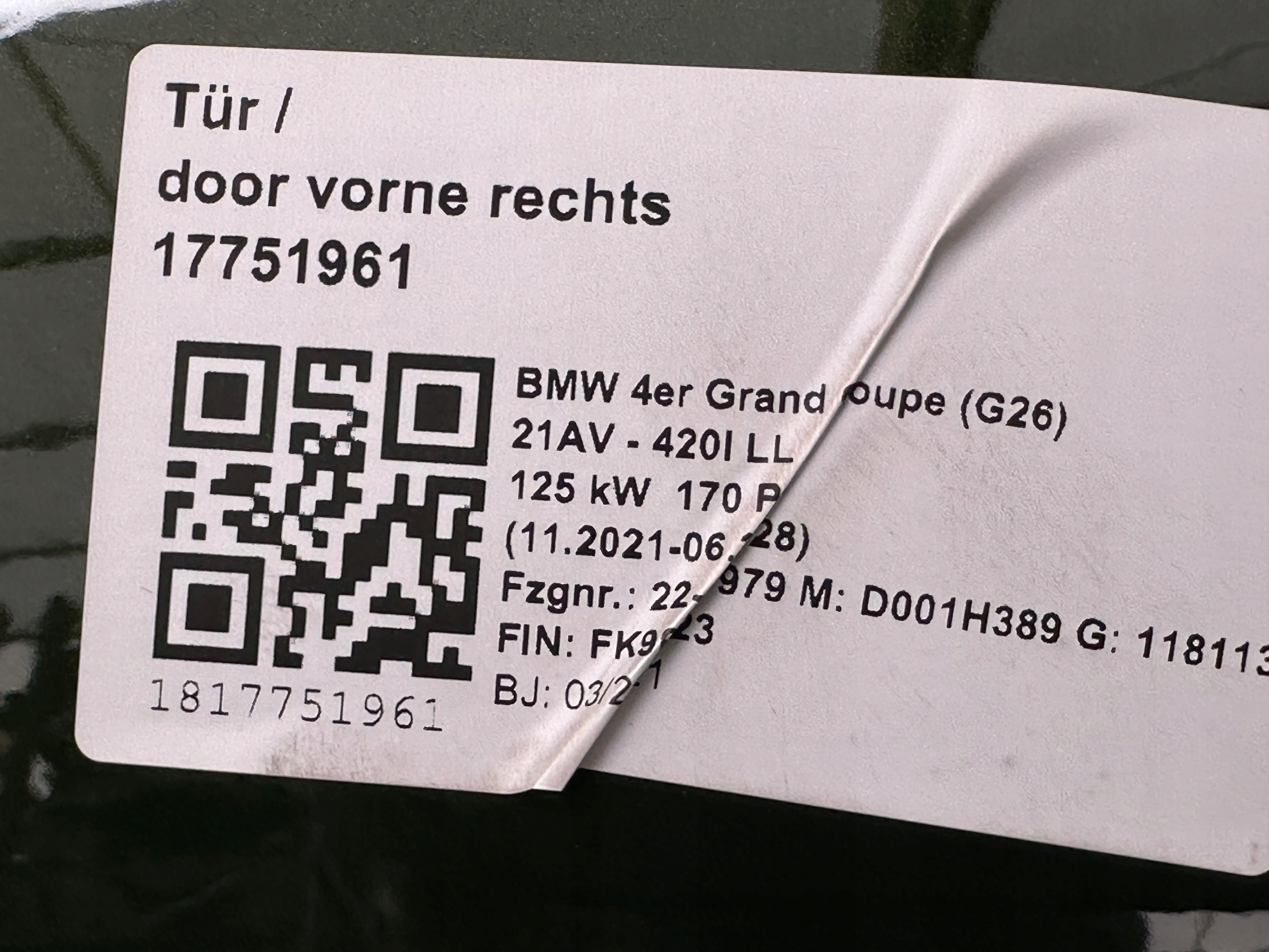 Bmw 4 g26 i4 дверь правая сторона комплект c4e