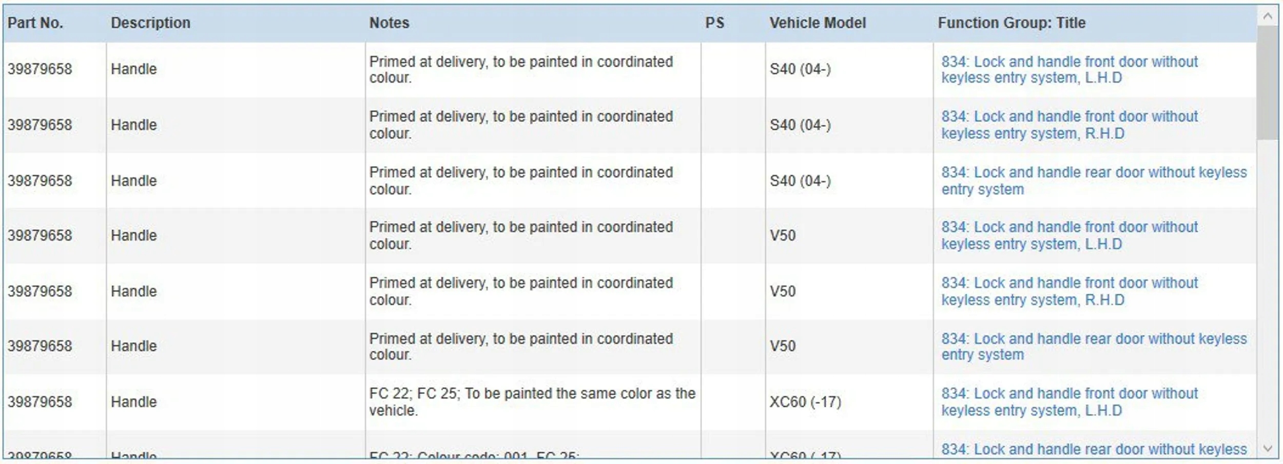 | Каталожный номер детали: | 39879658 |