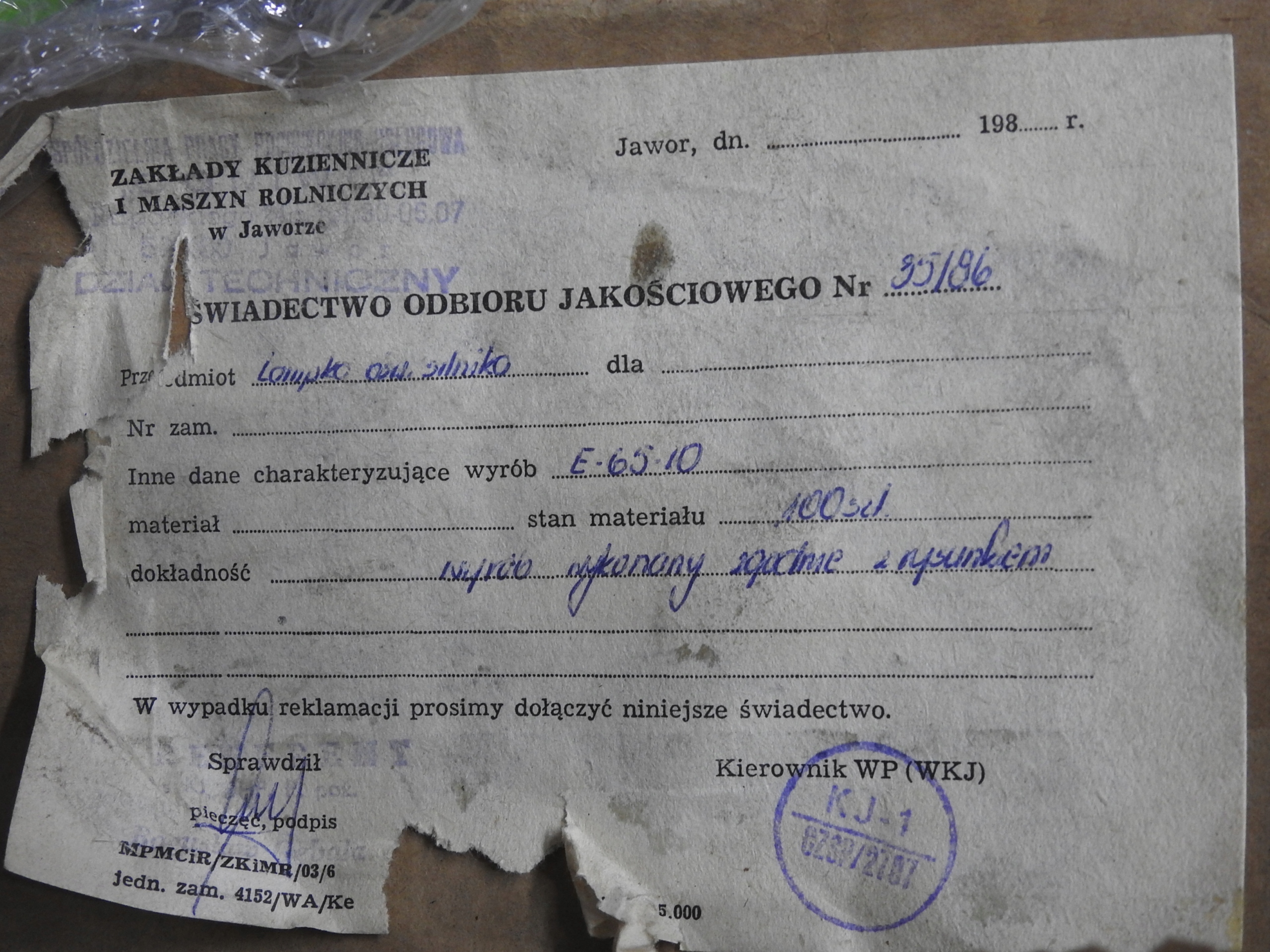 | Производитель запчасти: | другой zakłady kuziennicze i maszyn rolniczych w jaworze |