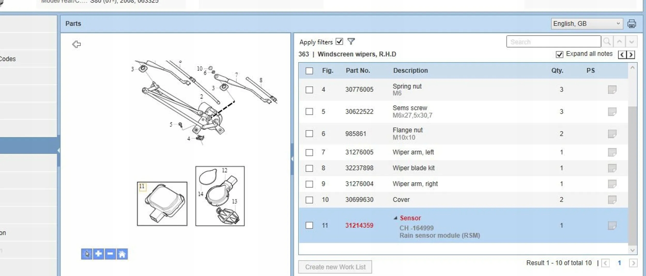 Volvo s80 2008 датчики дождя