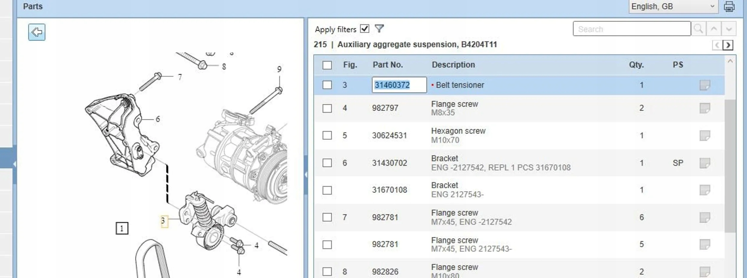 | Каталожный номер детали: | 31460372 |