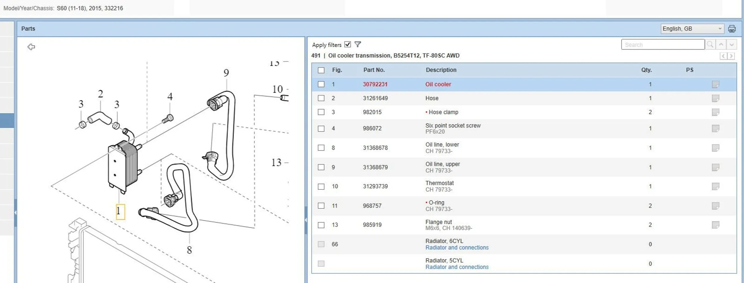 Volvo s60 2015 радиатор масла