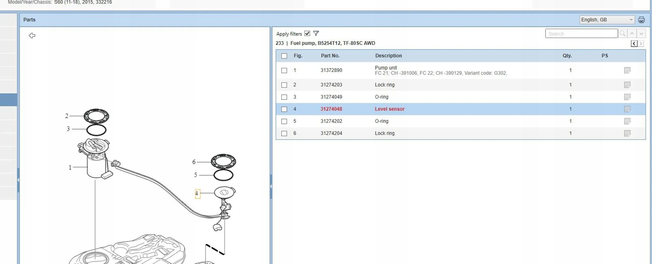 Volvo s60 2015 датчики уровня топлива