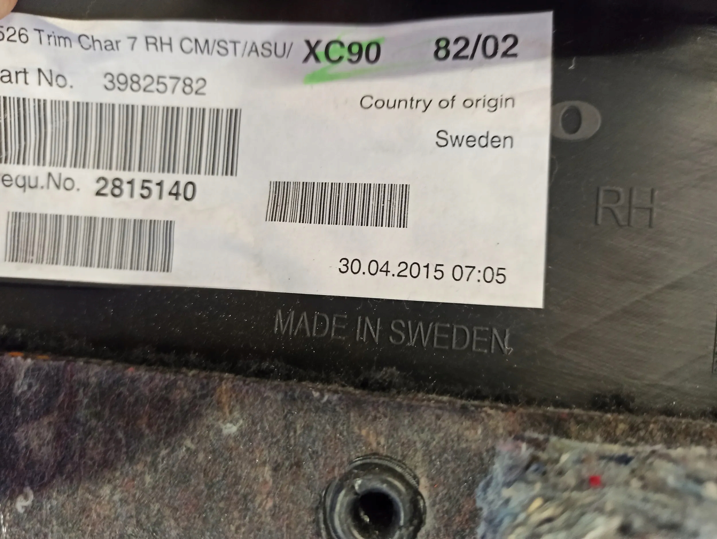 | Каталожный номер детали: | 39825778 |