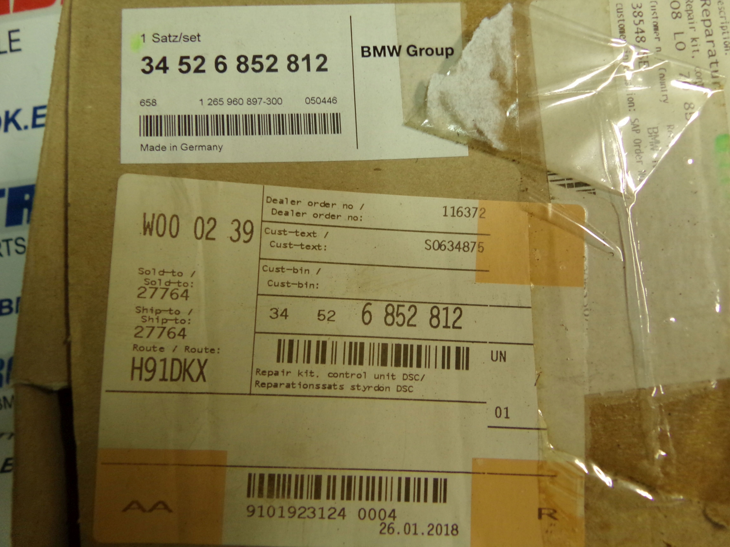 Есть ли гарантия на Bmw 5 f10 f11 6 f12 f13 блок управления насоса dsc новый 6852812?