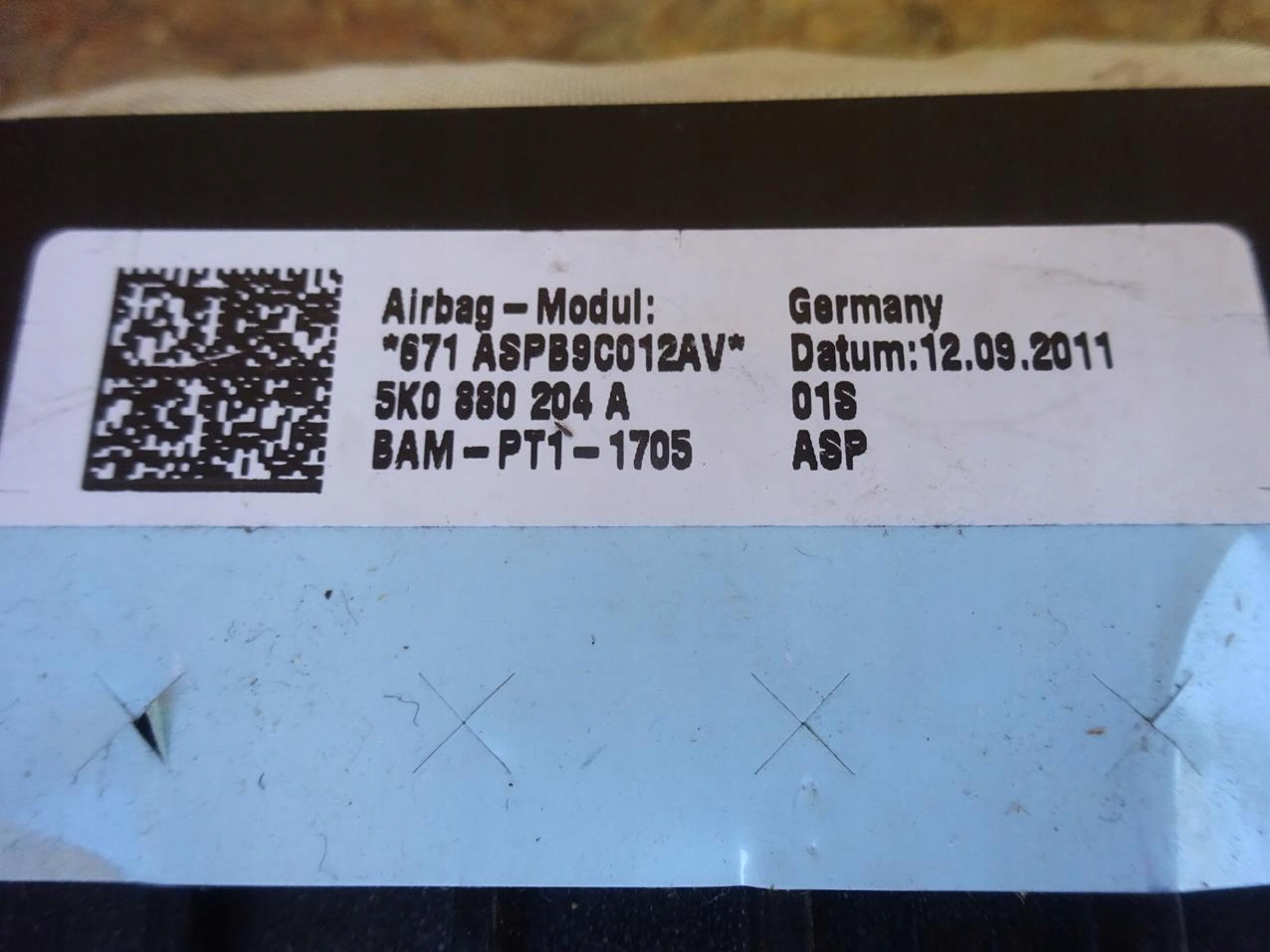 | Каталожный номер детали: | 5K0880204A, GOLF, VI, AIRBAG, PODUSZKA, PASAŻERA |
