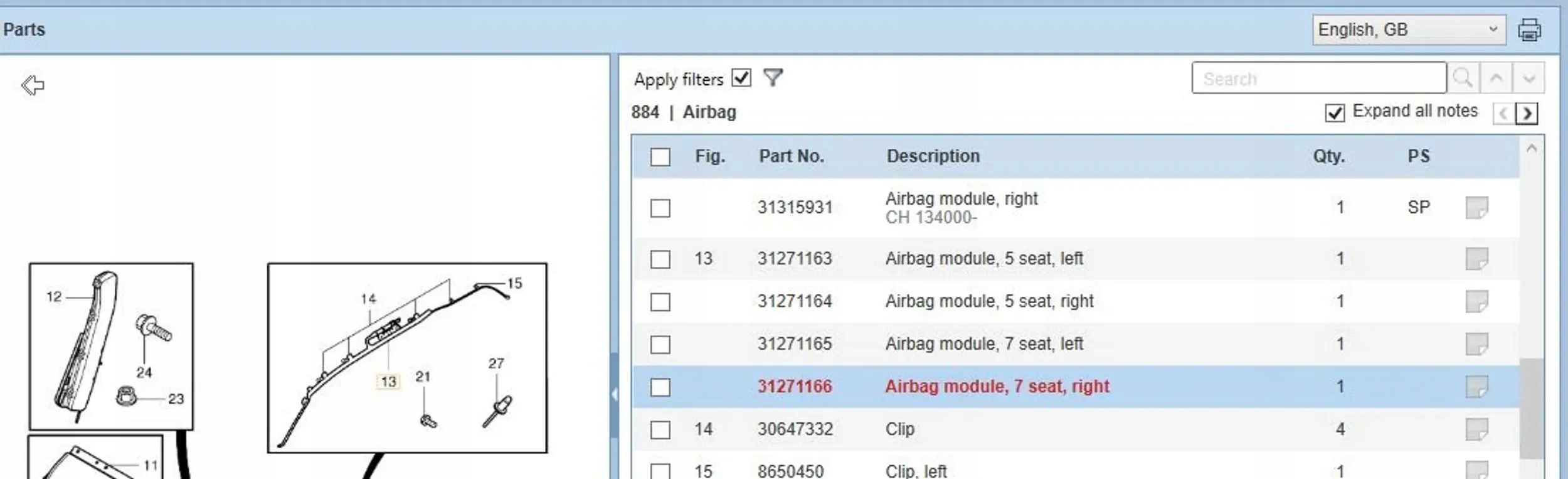 | Каталожный номер детали: | 31271166 |