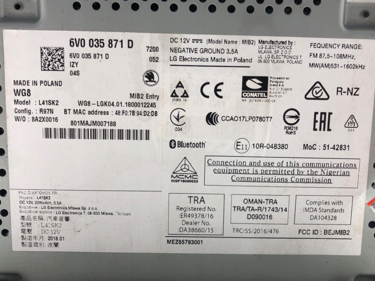 Радио skoda fabia iii 6v0035871d тюнер