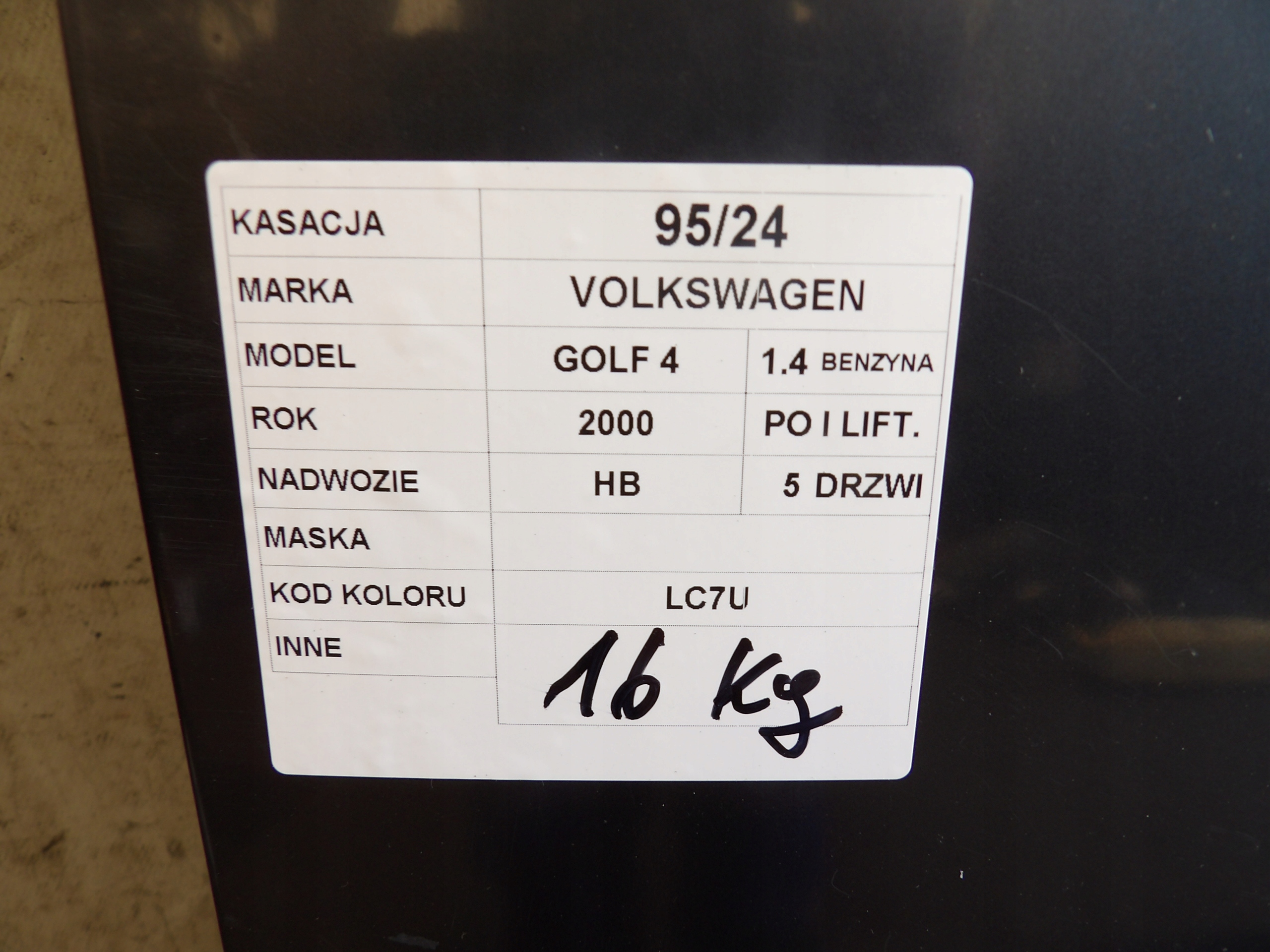 Есть ли гарантия на Vw golf iv капот lak. lc7u?