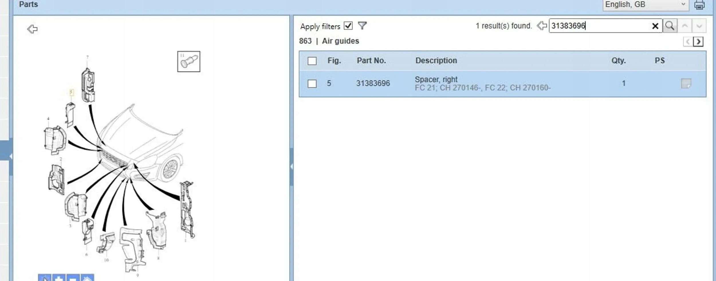 | Каталожный номер детали: | 31383696 |